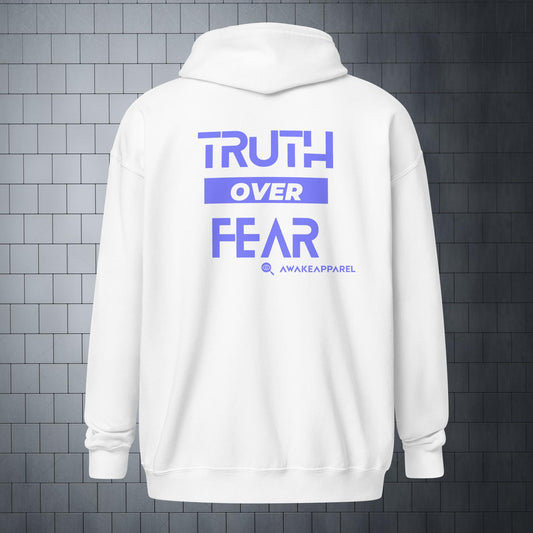 *Colección de lanzamiento* - La verdad sobre el miedo - Púrpura sobre fondo liso - Sudadera unisex con cremallera