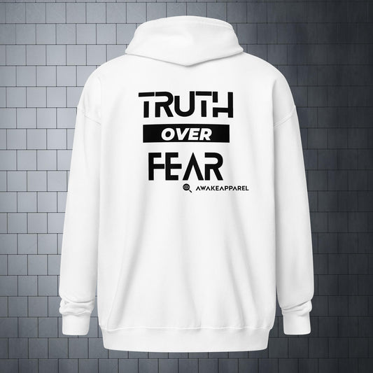 *Colección de lanzamiento* - La verdad sobre el miedo - Sudadera unisex con capucha y cremallera en blanco y negro