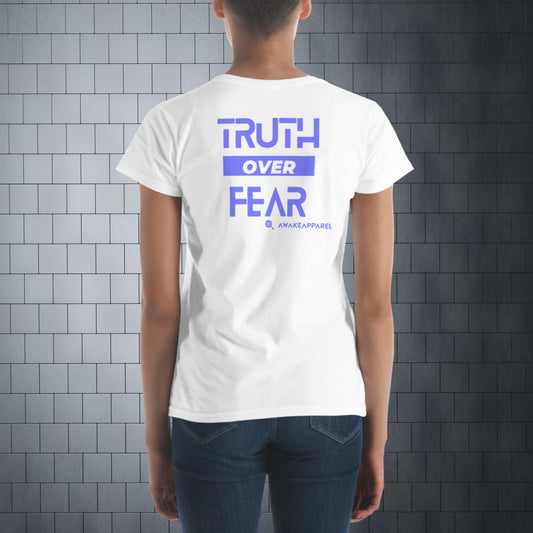 *Colección de lanzamiento* - La verdad sobre el miedo - Camiseta de mujer - Blanco y negro sobre fondo liso